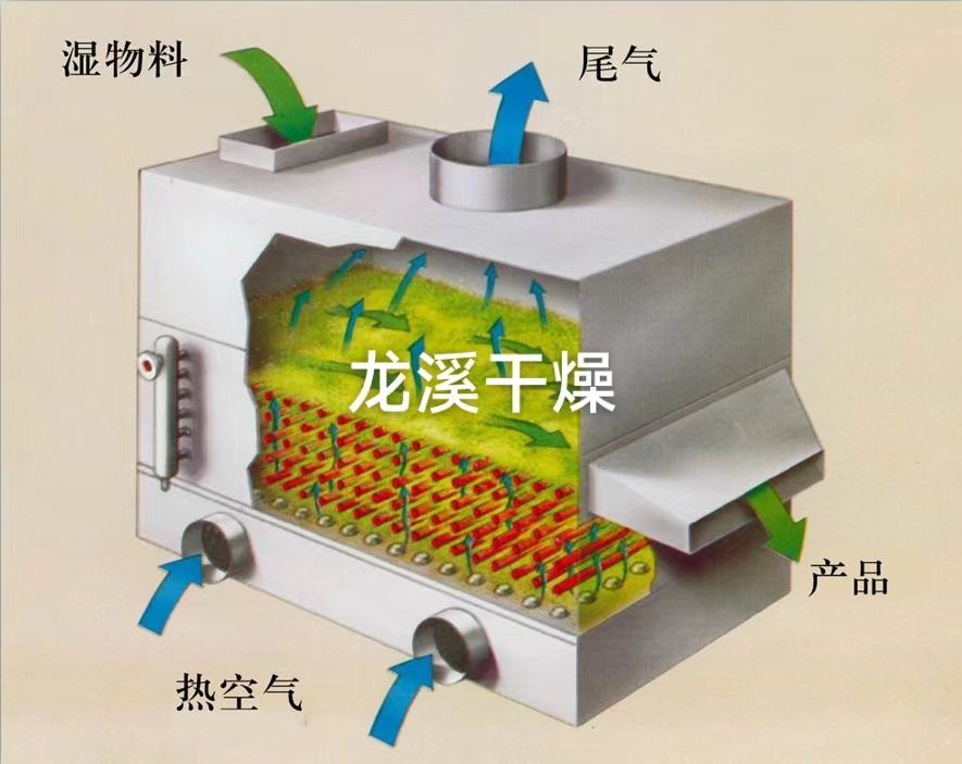 内加热流化床干燥机是在常规流化床干燥和间接加热式干燥基础上发展起来的一种新型干燥技术,将热交换器沉浸在流态化干燥物料中,物料脱水所需热量分别由管式热交换器和流化用热空气提供,可以以较小的风量满足物料流化干燥的要求。由于大部分热量是由内置热交换器提供,热空气主要是作为保证正常流态化的动力媒体,因此比常规流化床干燥机所需热空气量大大降低,电耗及尾气热损失大幅度减少。